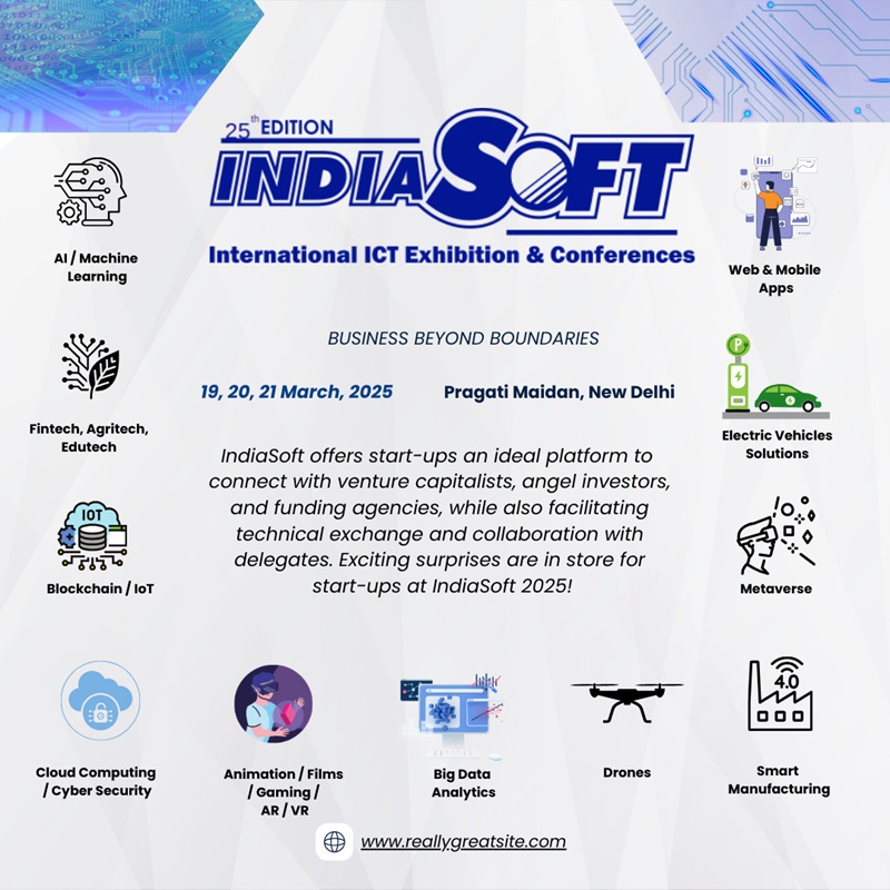 We are pleased to announce that the Electronics and Computer Software Export Promotion Council (ESC) is organizing the silver jubilee edition of INDIASOFT 2025, which will be held from March 19-21, 2025, in New Delhi. This premier event will showcase India’s leading innovations and advancements in various fields of technology.