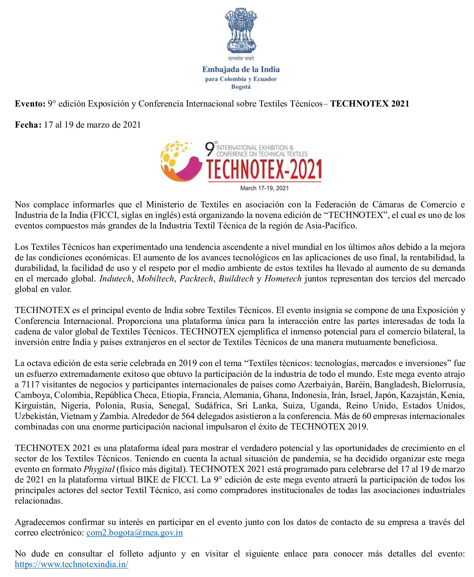 Do not hesitate to consult the brochure and visit the following link for more details of the event: https://www.technotexindia.in/