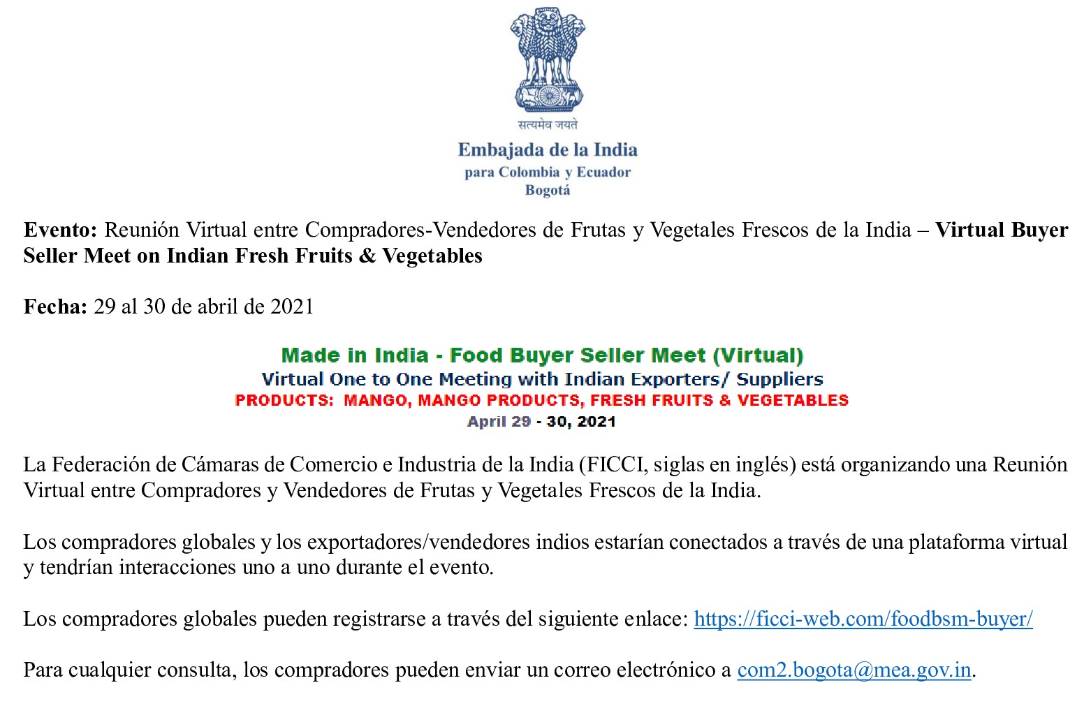 In case of any query, do not hesitate to contact us via email com2[dot]bogota[at]mea[dot]gov[dot]in