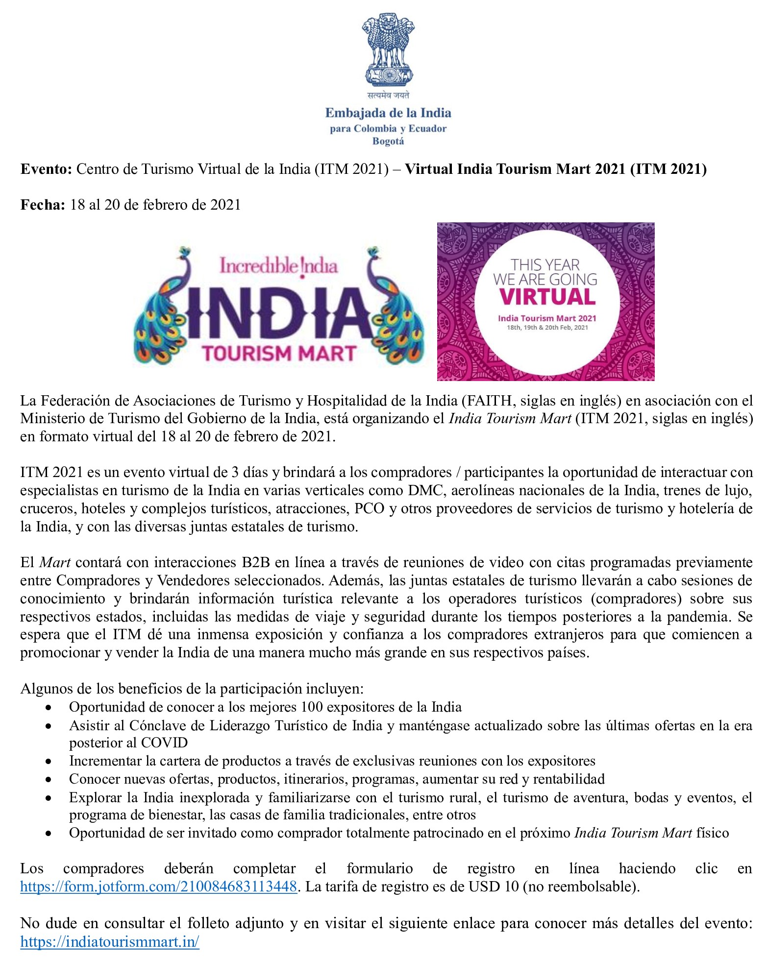 -Opportunity to be invited as a fully hosted buyer in the forthcoming physical India Tourism Mart